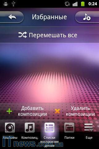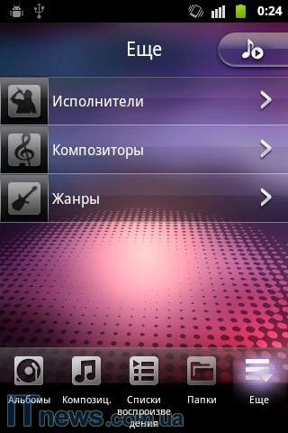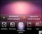 Реализованный в меню смартфона МР3-проигрыватель хотя и предлагает достаточно большое поле для маневра по части настроек, плюс в дополнение красивый интерфейс непосредственно самого приложения, но вместе с тем, настроек самого звука в меню не предусмотрено – странно! Поддерживаемые форматы аудио - MID, MIDI, AMR, MP3, AAC, eAAC+, AAC+ и eAAC.