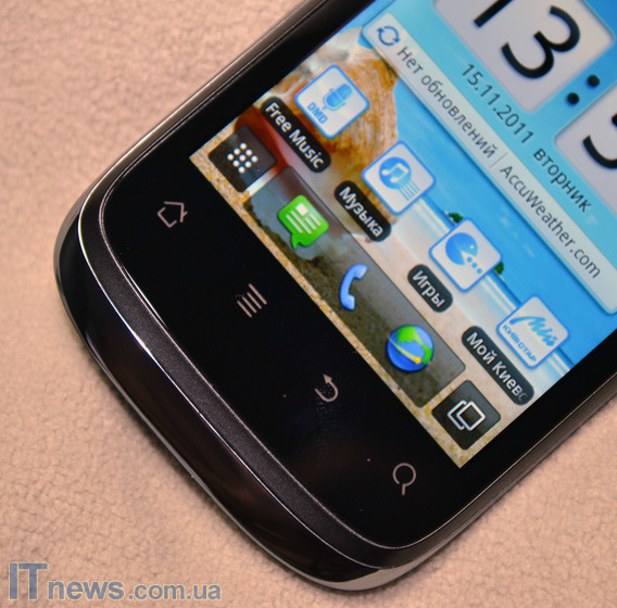 Ниже дисплея находится несколько сенсорных клавиш: кнопка вызова поиска, возврата в предыдущий подпункт меню, активации контекстного меню, а также клавиша HOME.