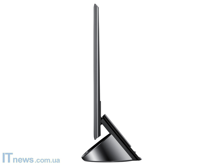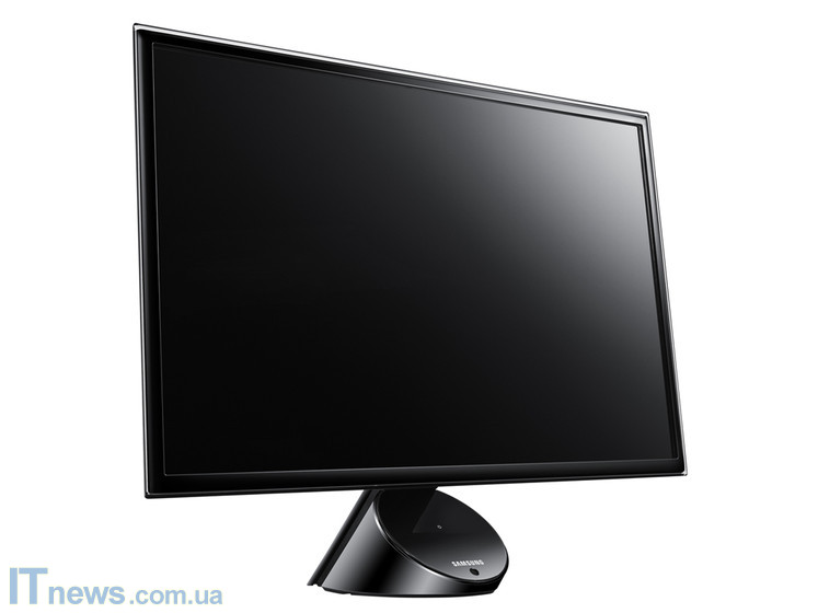 Монитор выполнен в тех же распространенных глянцево-черных тонах, но подход Samsung более утонченный: по периметру черная рамка экрана тонко подчеркнута прозрачной каемкой. Смотрится неплохо, но еще более оригинальна подставка: она выполнена в форме срезанной колонны, а на «срезе» расположены сенсорные кнопки управления монитором.