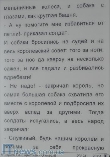 Чтение посредством ImBook 0311 удобное. Длительное использование ридера, что говорится, "без права перерыва на кофе", не вызывает дискомфорта для руки – перелистывание страниц удобное, разумеется, при помощи пальца руки, удерживающей устройство.