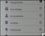 МР3-проигрыватель поддерживает форматы MP3, WMA, FLAC, AAC, OGG, WAV. Все треки в памяти приложения сортируются по "исполнителям", "альбомам", "избранному" и пр. В остальном ничего, обращающего на себя внимание, нет – простое управление во время проигрывания, переключение между треками всего в один клик – словом ничего лишнего.