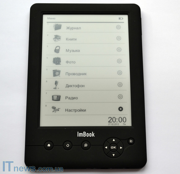 В ридере ImBook 0311 реализован 6-дюймовый дисплей, выполненный на основе E-ink матрицы.