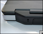 Задняя боковая панель несколько вынесена вперед над основным корпусом. Однако плохой такую реализацию назвать нельзя – даже наоборот, по-своему приятное и правильное решение. Обусловлено же такое решение несколько специфической реализацией аккумулятора. Помимо него, здесь же расположен разъем для подключения кабеля зарядного устройства, а также разъем для подсоединения противоугонного троса.