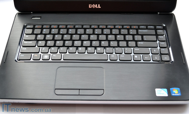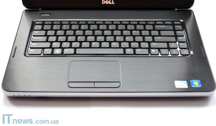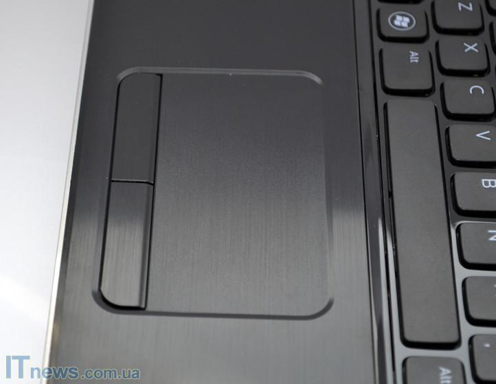 А вот на рабочей панели Vostro 1540 компания-производитель уже отдает дань моде – элегантный, "под алюминий", черный пластик, любящий почему-то отпечатки пальцев, а также глянец вокруг клавиатуры и в виде уже упомянутой ранее подкладки под раскладку.
