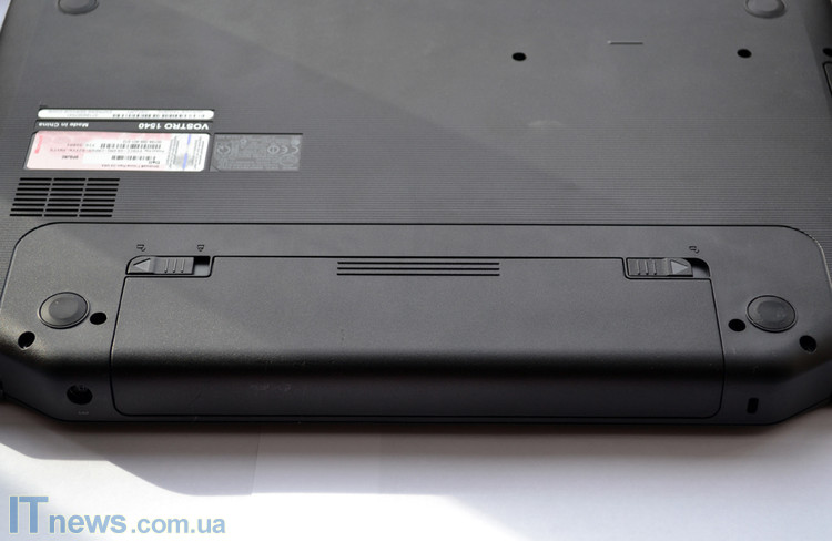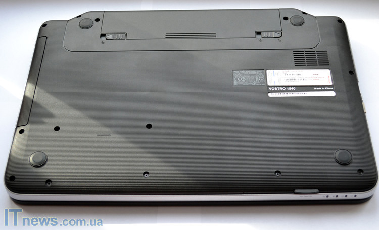 Точно такой же является нижняя панель Dell Vostro 1540. Материал корпуса тот же – текстурный пластик, тактильно напоминающий пластик soft touch. Впрочем, вряд ли могло бы быть иначе.