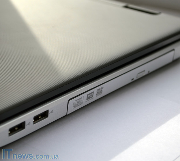 На правой боковой грани реализован привод для работы с оптическими дисками, а также два USB-порта.