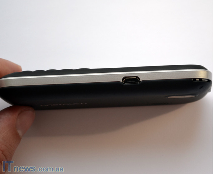 В руке трубка сидит удобно – спасибо опять таки материалу корпуса. Габариты модели 106х46х13,4 мм, вес только 80 г. Все это вместе "подразумевает" простой факт – трубка будет удобна даже в руке ребенка. Впрочем, рука автора этих строк к Alcatel One Touch 506 "привыкла" уже за пару часов работы.