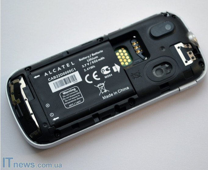 Реализованный в Alcatel One Touch 506 аккумулятор получил емкость 650 мАч.