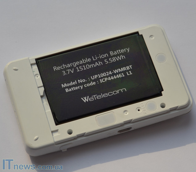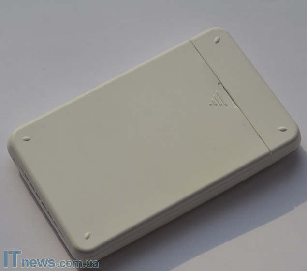 Все возможные функциональные элементы в WeTelecom WMR-100 – это пара индикаторов, отвечающих за различные сигнальные функции тех или иных процессов в системе, многофункциональная кнопка на верхней панели, порт micro-USB, а также заметная вентиляционная сетка на одной из боковых граней плюс крышка, прикрывающая огромный по меркам модема аккумуляторный отсек.