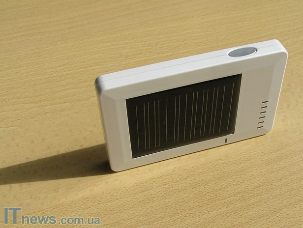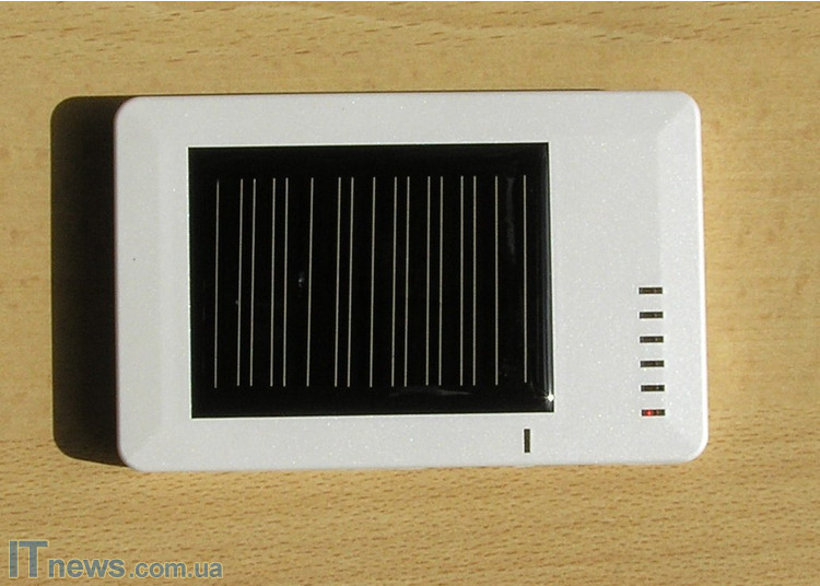 На передней панели зарядки размещена солнечная батарея и светодиодные индикаторы, информирующие о разных состояниях и заряде самой зарядки. Один из них светится красным цветом, когда начинается процесс заряда от солнечного света. Практически он продолжается всегда, когда светло, и прекращается в темноте. Отдельно расположенный индикатор светится при подключении заряжаемого устройства.