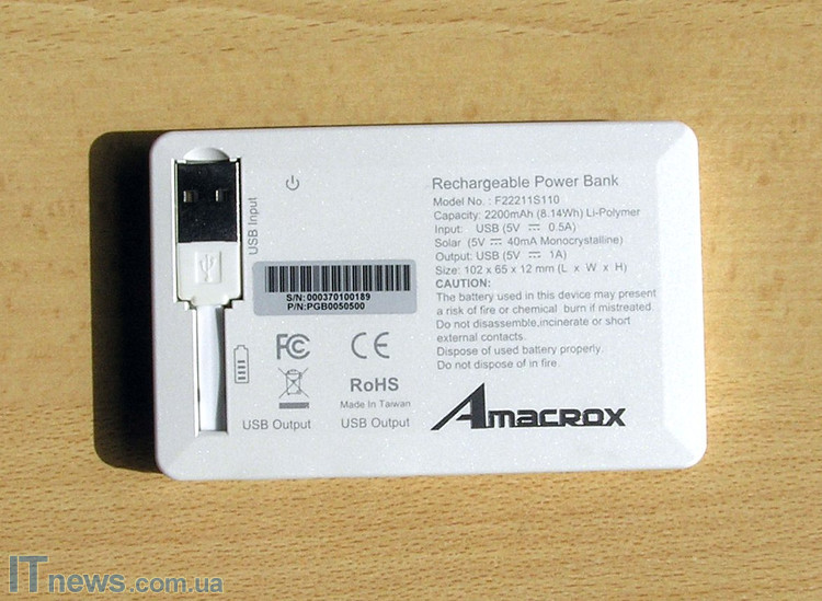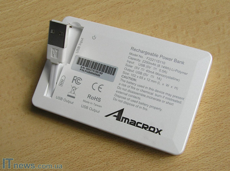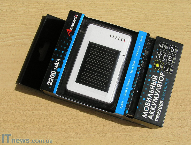 Мобильная зарядка Amacrox PB2200S способна не только подзаряжаться от ноутбука или компьютера, но и от солнечной энергии.