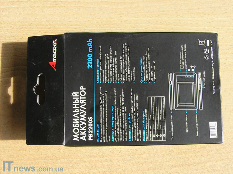 Зарядка вместе со всеми комплектующими упакована в удобную пластиковую коробку. На ней, кстати, указана вся информация, касающаяся устройства. Итак, зарядка Amacrox имеет емкость 2200 мА*ч. К ней в комплекте идут переходники для подключения устройств Apple (iPhone, iPod и iPad), Sony Ericsson, Nokia, а также всех устройств с mini и microUSB-портами, использующимися для зарядки. И еще в комплекте идет удобный мешочек, в котором можно, кстати, носить не только зарядку, но и мобильный телефон. Что кому нравится.