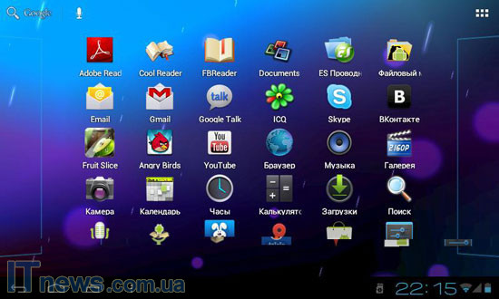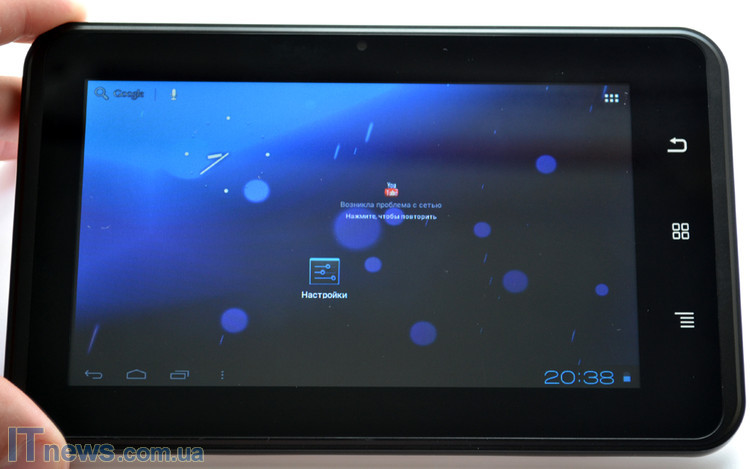 Диагональ семь дюймов, матрица емкостная, разрешение 800х480 точек. Такова, с позволения говоря, "визитка" дисплея. Что еще приятно – с чувствительностью здесь все в порядке – иконки подменю даже на прикосновения вскользь реагируют незамедлительно.