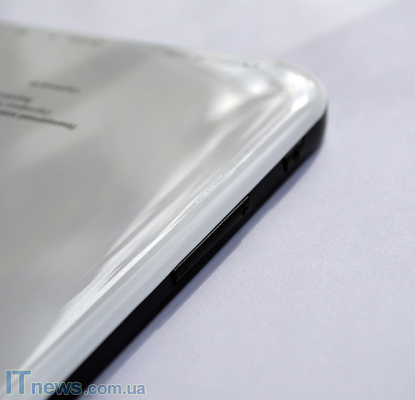 Противоположная панель кроме прорези под сетку встроенного динамика, а также нескольких строк технической информации об аппарате, других элементов не получила.