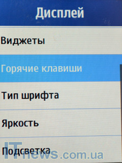 Подсветка дисплея регулируется вручную из соответствующего подменю. Помимо этого, здесь же имеется возможность работать с тайм-аутом подсветки для устройства, пребывающего в режиме ожидания, настраивать виджеты, присваивать различные функциональные особенности "горячим" клавишам и пр.
