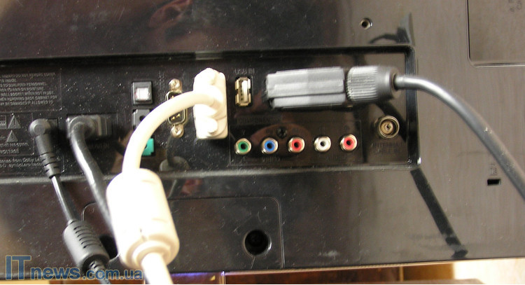 Сзади расположены все необходимые порты и разъемы. Здесь есть D-Sub, HDMI, SCART, компонентный вход, оптический аудиовыход, интерфейс USB и антенный вход.