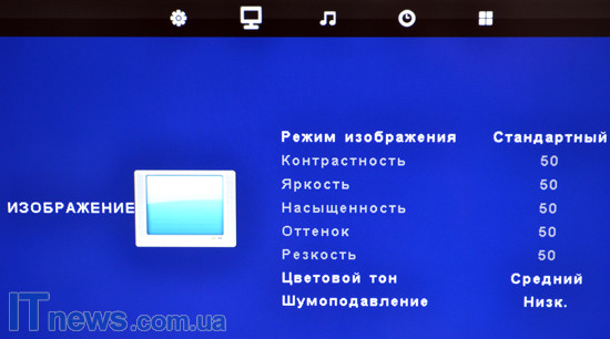 После чего пользователь нажатием кнопки MENU переходит в раздел настроек изображения, а также настроек звука, выбора языка интерфейса и прочее. Здесь как по мне все предельно понятно – реализация интуитивно освоима. Кроме того, что как мне по мне отдельно плюс – возможность легкого возврата к настройкам, реализованным производителем изначально. Облегчает работу с настройками, в особенности первоначально, когда еще можно забыть, какой параметр за каким настраивался.