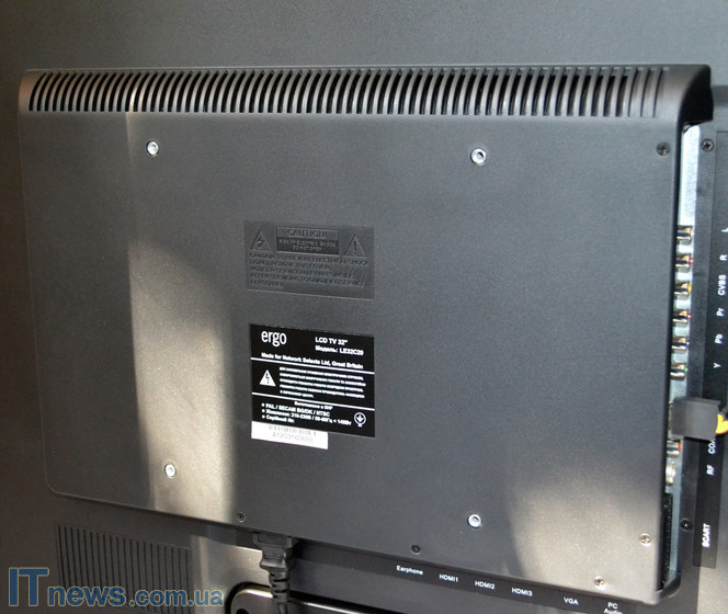 На самом же "пьедестале" расположены металлические разъемы для крепления Ergo LE32C20 на кронштейн стандарта VESA 200x200, который легко найти в любом магазине электроники.
