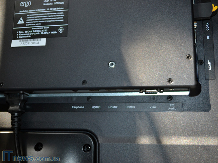 Выше я уже писал о том, что все кнопки и разъемы Ergo LE32C20 между собой обустроены таким образом, чтобы пользователь никоим образом не запутался в шнурах, даже если захочет подключить все возможные здесь источники воспроизведения.