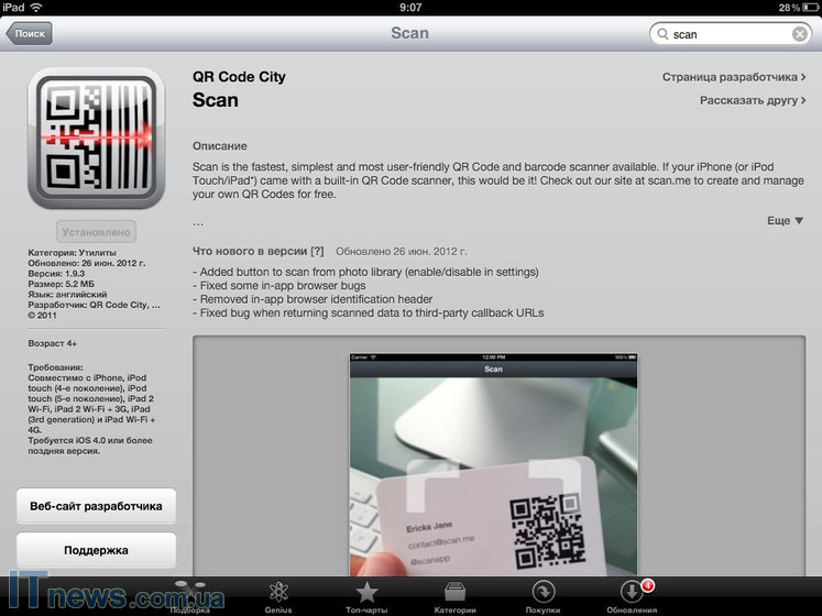 Итак, все, что нужно для того чтобы узнать, какая информация спрятана за тем или другим QR или штрихкодом – это навести камеру вашего iPad непосредственно на сам код. Секунду либо две система фиксирует информацию, затем "отправляет" пользователя на страницу, где и будут доступными все данные, "зашифрованные" кодом.
