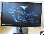 Корпус монитора выполнен из черного пластика, благодаря использованию LED-подсветки, монитор достаточно тонкий — всего 5,5 см. Диагональ дисплея 23 дюйма, разрешение 1920х1080 (Full HD), яркость 250 кд/м2, контрастность 5000000:1, время отклика 5 мс, углы обзора 178° как по горизонтали, так и вертикали. Как говорится, все что нужно для счастья.