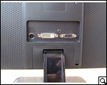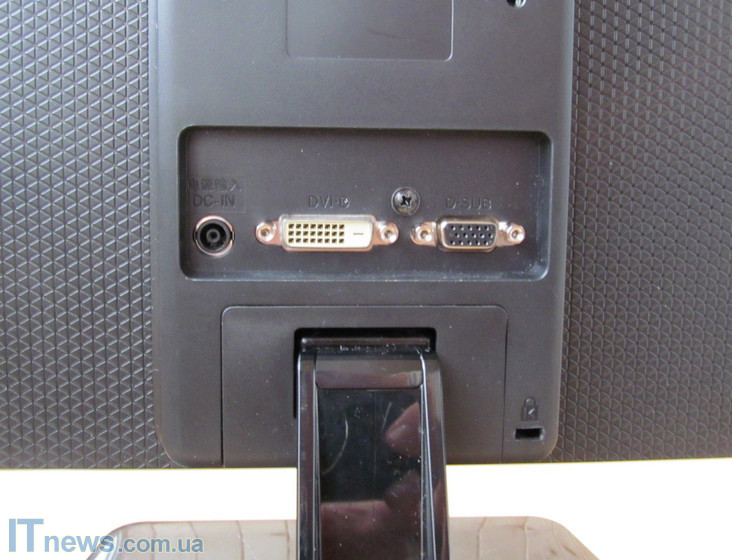 Кстати, в задней части ножки имеется выемка с крючком, позволяющие закрепить и спрятать кабеля (их надо всего два — питания и подключения). Сзади монитора находятся всего два порта: DVI-D и D-SUB (VGA). Плюс разъем для подключения кабеля питания.Таким образом, столь важный на сегодня разъем HDMI отсутствует.