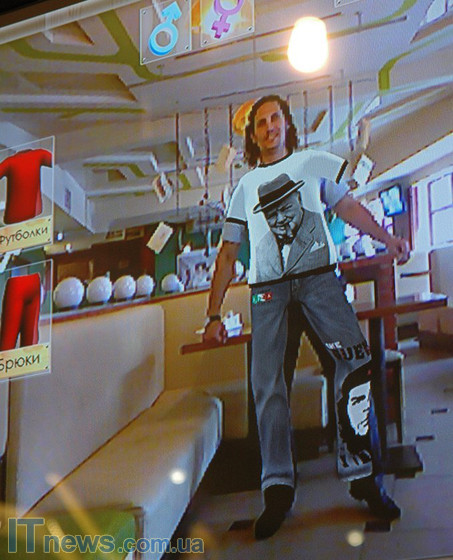 Нам удалось одними из первых протестировать данный сервис. Заключается он в том, что пользователь подходит к экрану виртуальной примерочной, система считывает параметры человека (рост, объёмы) для определения размера одежды. Далее при помощи жестов рук, используя Kinect, можно выбрать пол, интересующую одежду, аксессуары.