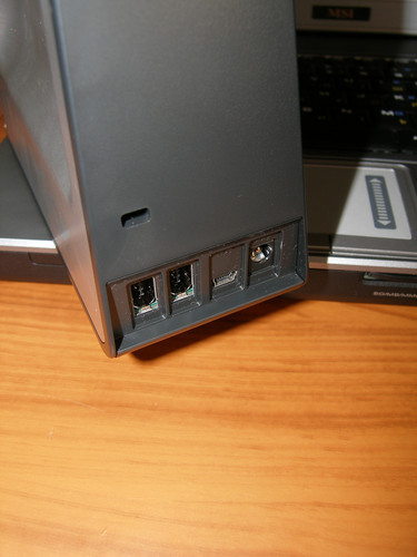 Корпус на 90% проработан из анодированного алюминия. Из него сделаны стенки устройства. Еще одним материалом здесь является пластик soft touch, который окантовывает само устройство. На этой окантовке находятся все разъемы гаджета. Сосредоточены они внизу правого торца. Разъем для штекера питания, разъем стандарта mini-USB для кабеля синхронизации с компьютером или другим мобильным устройством и два разъема FireWire.