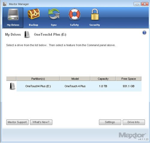 Первая страница посвящена получению информации и настройке подключенных к компьютеру накопителей семейства OneTouch.