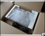 Принтер упакован в аккуратную коробку, на которой указаны все основные характеристики. Помимо самого устройства в комплекте идет сетевой кабель, краткая инструкция для запуска, компакт-диск, гарантия, лоток для бумаги и, естественно, отдельно запечатанный барабан и картридж с тоннером. Не очень удобно, что в комплекте нет USB-кабеля, так что его придется докупать. Но такая почему-то практика у производителей принтеров.