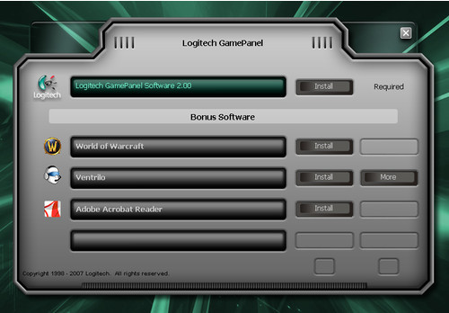 Говорить о каких-либо проблемах или подводных камнях здесь не приходиться, все достаточно просто и интуитивно понятно. После установки программы Logitech GamePanel SoftWare 2.00 заходите в "Пуск", выбираете запуск программного пакета. Перед вами открывается такое диалоговое окно.