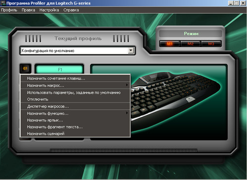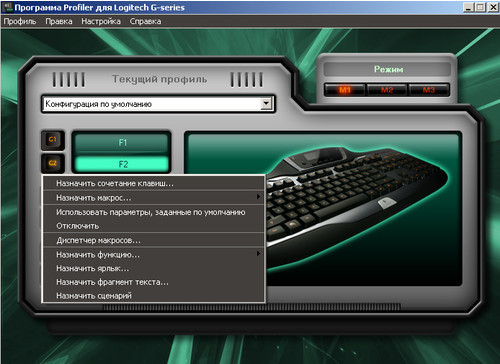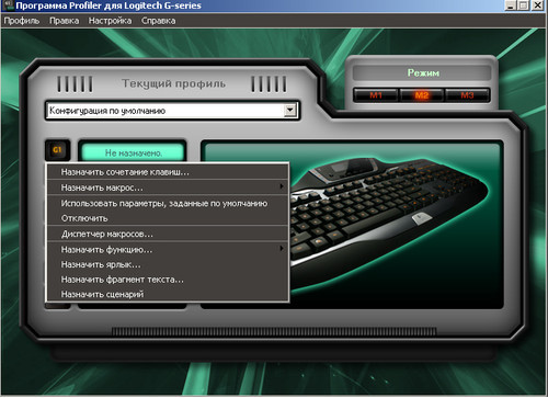 Перпендикулярно этим кнопкам размещены макросы, или по-другому говоря режимы. С помощью этих макросов пользователь может переключаться между режимами работы клавиатуры. Иначе говоря, можно условно назначить три вида, к примеру "работа", "игры" и "работа с графикой", и уже согласно этим разделам, назначить запуск необходимых приложений или комбинацию необходимых программ. Согласитесь – эта особенность заслуживает внимания.