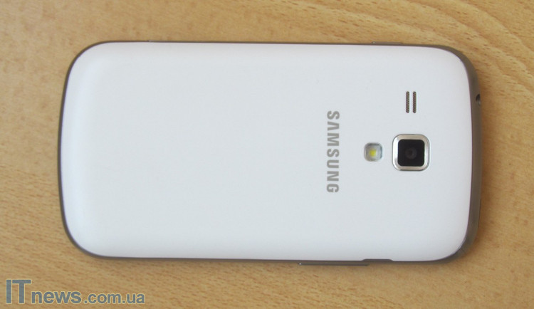 Samsung Galaxy S Duos облачен в белый корпус, хотя, судя по его размерам (121,5x63,1x10,5 мм и вес 120 г), он не ориентирован на женскую аудиторию. Скорее запущен новый тренд — красивые смартфоны для мужчин. Хотя на рынке есть и черный собрат.