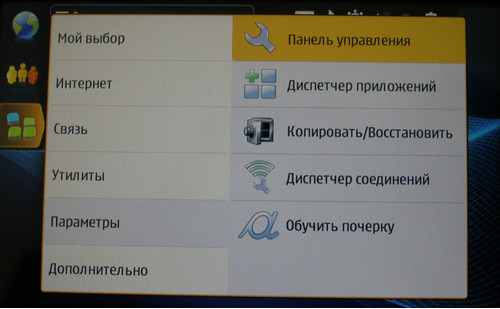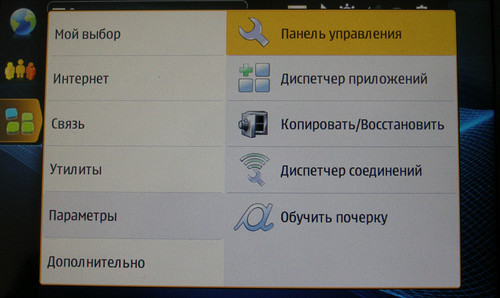 Подпункт "Параметры" по большому счету содержит служебные приложения. Одним из самых интересных приложений здесь является программа восстановления информации, при помощи которой возможно воссоздавать информацию с ранее скопированных резервных копий. Понравилось нам также приложение "обучить почерку".