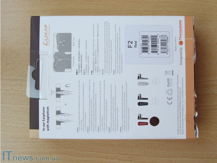 Внизу коробки нарисовано, как можно носить на шее наушники. Все просто, пристыковываем их друг к другу, и таким образом они висят на шее. Как указано в информации, данная технология даже запатентована производителем, так что ее нелегко будет повторить другим, той же Apple, например, придется платить Thermaltake, или ломать голову, как создать нечто подобное.