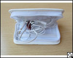 Кстати, благодаря магнитам и достаточно сильному притягиванию наушников друг к другу, их можно не только носить на шее, но и в кармане, где также будет маловероятным "создание морского узла". Но производитель предусмотрел белый чехольчик, в который они вкладываются и опять же не запутываются. А еще провод к ним довольно плоский, что также препятствует скручиванию