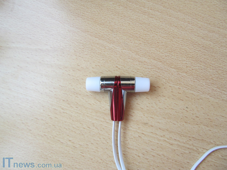 Наушники имеют не банальную пластиковую конструкцию с дырочками для прослушивания, а выполнены из металла, миниатюрные динамики закрыты сеточками, а вокруг - заглушки из мягкой резины. Вся конструкция выглядит стильно и практично. Наушники надо хорошо вставить в уши, после чего они сидят там достаточно плотно. Звук также - на высоте. Хорошие верхние частоты и мягкие басы.