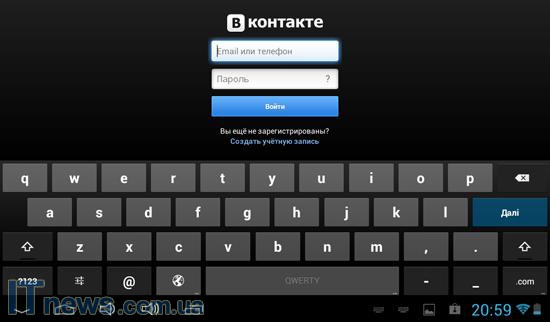 Из изначально предустановленных в меню рассматриваемого планшета приложений стоит отметить уже упомянутый браузер Chrome, а также клиенты "ВКонтакте" и "Одноклассники", популярную игру Angry Birds, приложение Aldiko и пр.