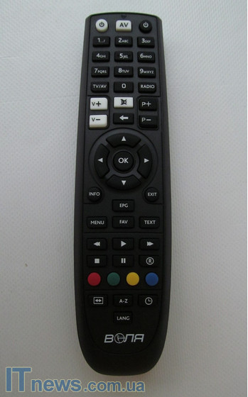 Скажу, что заказывая пульт, я надеялся, что он позволит переключать каналы непосредственно на телевизоре, если в нем используется CAM-модуль. Но этого не произошло. ДУ может, кроме привычных функций по управлению ТВ-тюнером, еще включать и выключать телевизор, переключаться между источниками входного сигнала телевизора (TV/AV) и управлять громкостью телевизора при помощи кнопок громкости больше-меньше (V+ и V-) или вообще выключать звук (кнопка Mute). Все кнопки, которые позволяют управлять телевизором, - белого цвета.