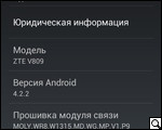В отношении беспроводных модулей и интерфейсов ZTE V809 оснащен Wi-Fi 802.11 b/g/n и Wi-Fi Direct, Bluetooth 3.0 (A2DP), VPN и пр.