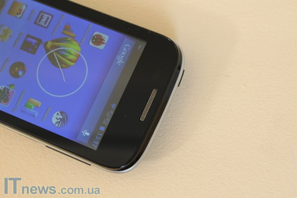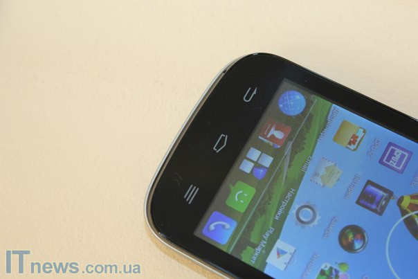 Передняя панель смартфона разделена между дисплеем, тремя традиционными сенсорными кнопками, а также прорезью коммуникационного динамика плюс датчиками освещенности/приближения.