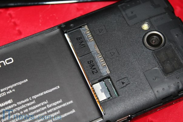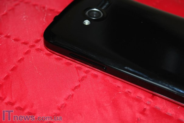 Всю тыльную панель прикрывает крышка аккумуляторного блока. В ней вывод глазка основной камеры, а также светодиодной вспышки и сетки динамика громкой связи. На этой же панели при помощи специальной краски нанесен логотип компании-производителя.