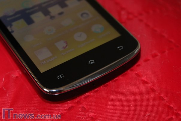 На передней панели смартфона расположен естественно дисплей, три классические, как для Android-смартфонов, сенсорные кнопки, а также прорезь коммуникационного динамика плюс глазок фронтальной VGA-камеры.