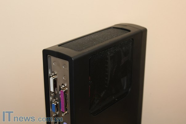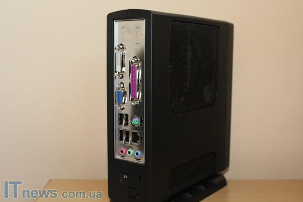 Сразу же остановимся на тыльной панели. В целом здесь ничего необычного: 4 порта USB 2.0, порт Ethernet и пр. Кроме того, в самом низу панели пользователь увидит петлю для крепления противоугонного троса, а также разъем для подключения блока питания.