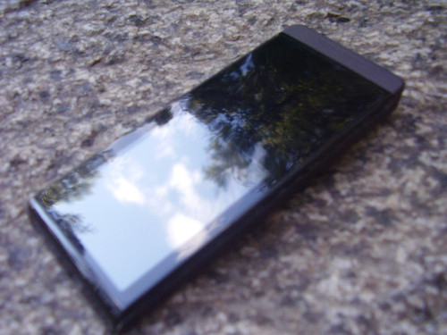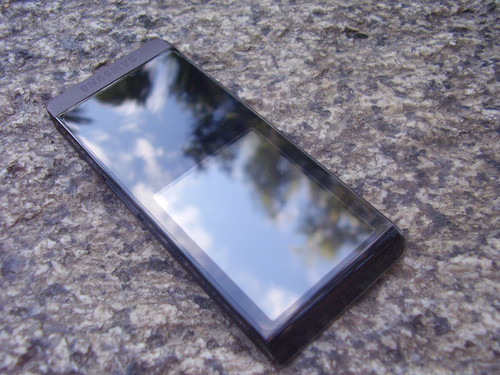 Общее впечатление о внешнем виде устройства дополняют его немного скошенные короткие грани. Несмотря на свою небольшую толщину (7.9 мм), плеер удобно сидит в руке, однако, положив гаджет в карман, вы вообще его не почувствуете. Единственным минусом стилевого оформления можно назвать очень маркую лицевую панель, на которой то и дело появляются отпечатки.
