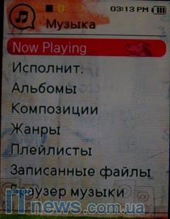 Меню представлено следующими пунктами: Music, Video, Pictures, Radio, Datacasts, Prime Pack, File Browser, Bluetooth, Settings. Доступ к вашим музыкальным записям можно осуществлять различными способами: расформировав их по жанру, исполнителям, альбомам. Пользователи смогут составлять свои плей-листы или же просто производить поиск по музыкальному браузеру или записанным файлам. Кроме того, вам будут доступны различные звуковые эффекты и режимы воспроизведения, включая разнообразные настройки эквалайзера, функции подавления шумов и доступ к системе DNSe (Digital Natural Sound engine), которая создает эффект объемного звучания.