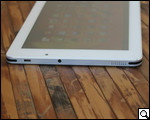 Верхний торец получил спаренную кнопку регулировки громкости звука, а также клавишу включения/выключения питания аппарата плюс слот для карт microSD и вывод микрофона шумоподавления. Стоит отметить, что слот под упомянутый накопитель "утоплен" в корпус планшета, а потому для работы здесь предусмотрена небольшая металлическая скрепка, при помощи которой можно вставить и вынуть карту памяти.