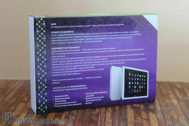 Все это производитель поместил в красочную картонную коробку, габариты которой чуть больше средних. Кстати, изучая ее, пользователь, помимо сносок с ключевыми техническими особенностями планшета, увидит также несколько иллюстраций аппарата. Но, несмотря на то, что полиграфия здесь довольно качественная, вместе с тем я бы не советовал делать какие-либо выводы о дизайне устройства по этим картинкам - Impression ImPAD 8901 - это один из тех гаджетов, фотографии которого не передают всех изюминок внешности - необходимо только визуальное знакомство!