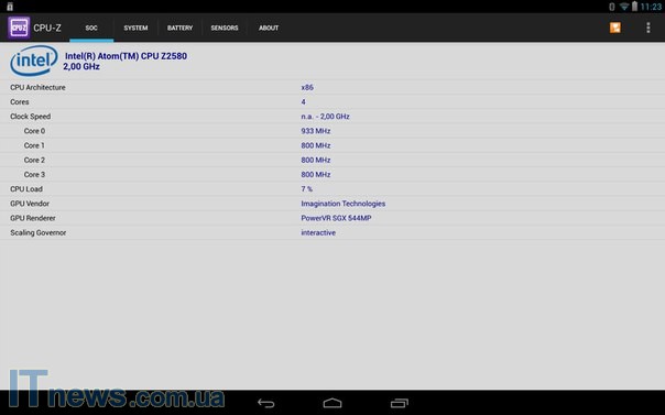 Планшет создан на базе 2-ядерного процессора Intel Atom Z2580, тактовая частота которого 2 ГГц. Кроме того, "под капотом" 2 ГБ оперативной памяти и графика PowerVR SGX544.