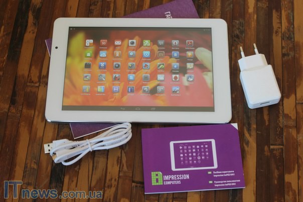 Комплектация Impression ImPAD 8901 следующая: сам планшет, адаптер зарядного устройства, кабель micro-USB плюс необходимая документация, включая гарантийный талон, а также скрепка для работы с картой памяти microSD.